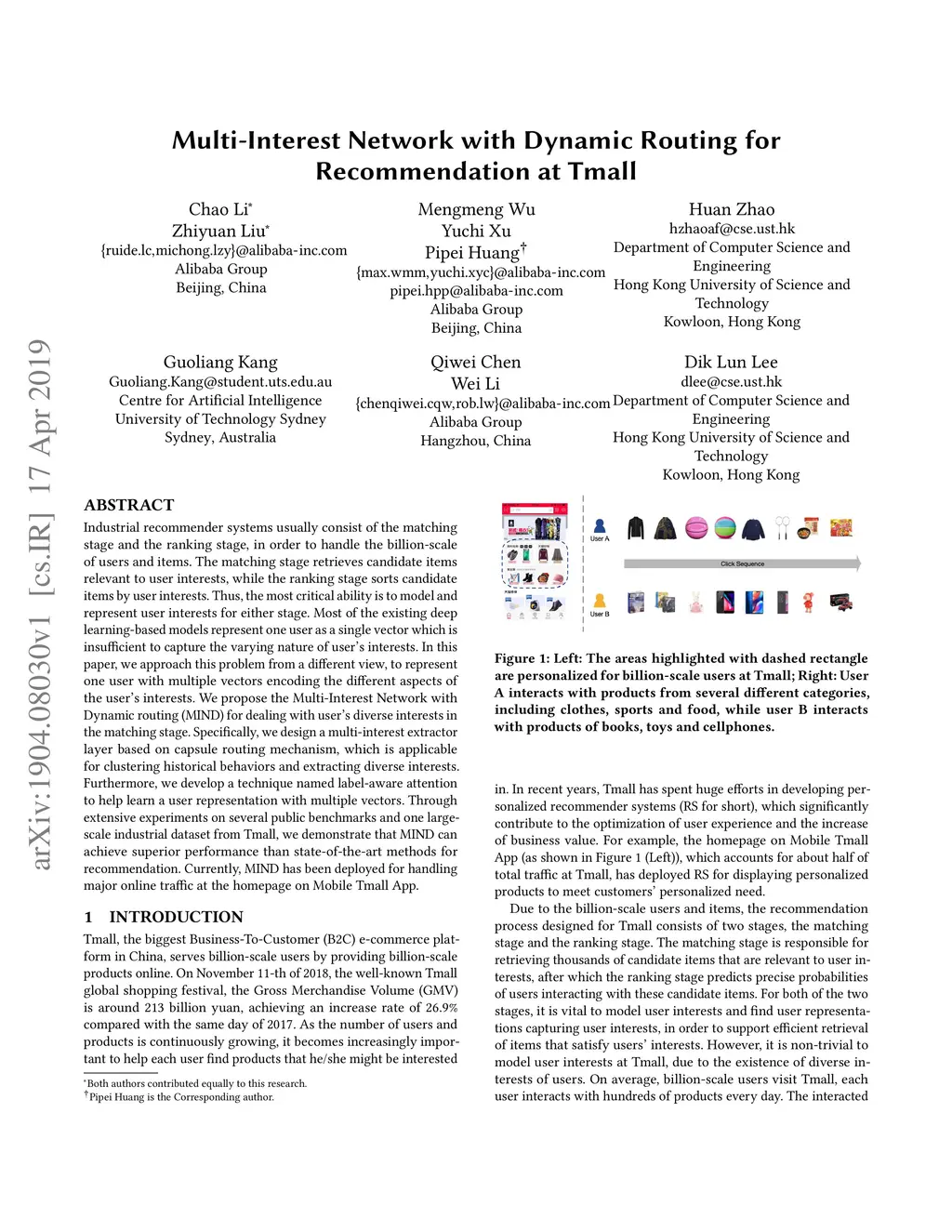 Multi-Interest Network with Dynamic Routing for Recommendation at Tmall