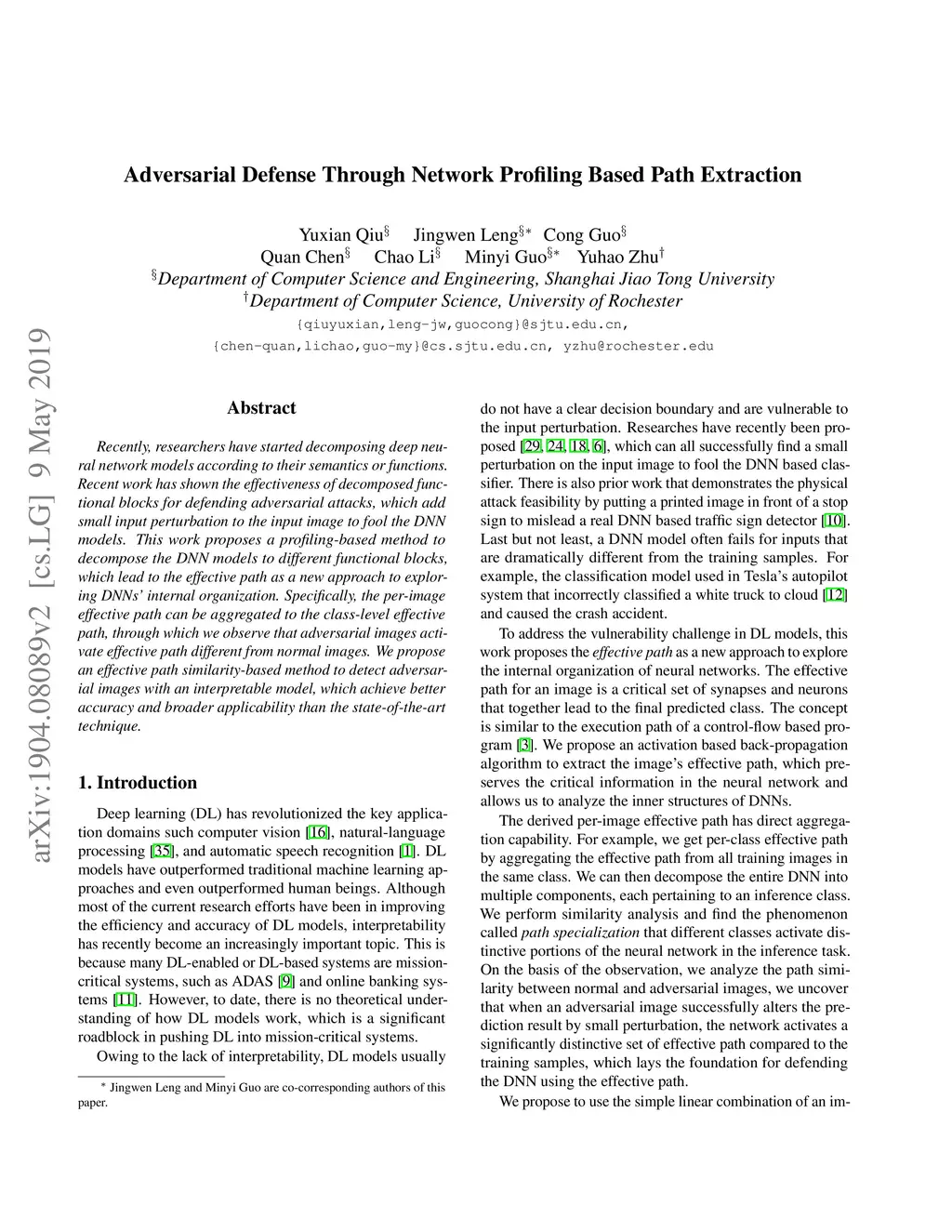 Adversarial Defense Through Network Profiling Based Path Extraction
