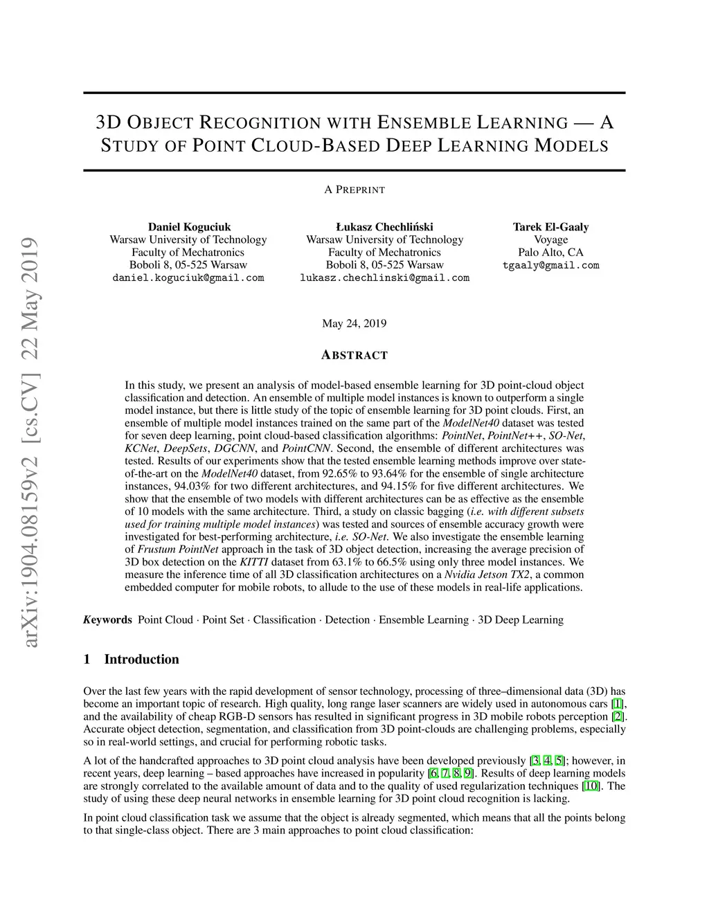 3D Object Recognition with Ensemble Learning --- A Study of Point