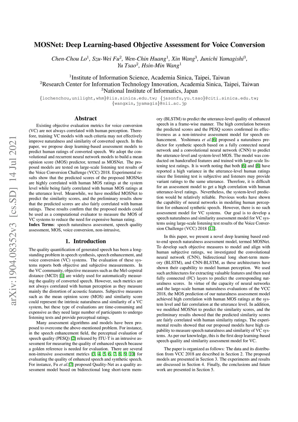 MOSNet: Deep Learning based Objective Assessment for Voice Conversion