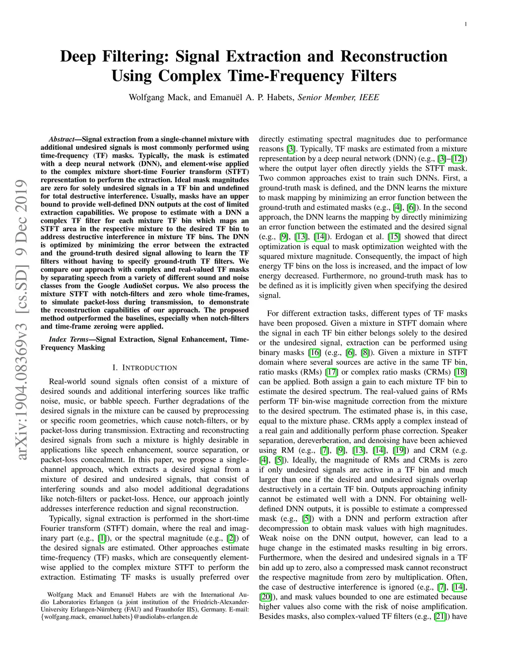 Deep Filtering: Signal Extraction and Reconstruction Using Complex