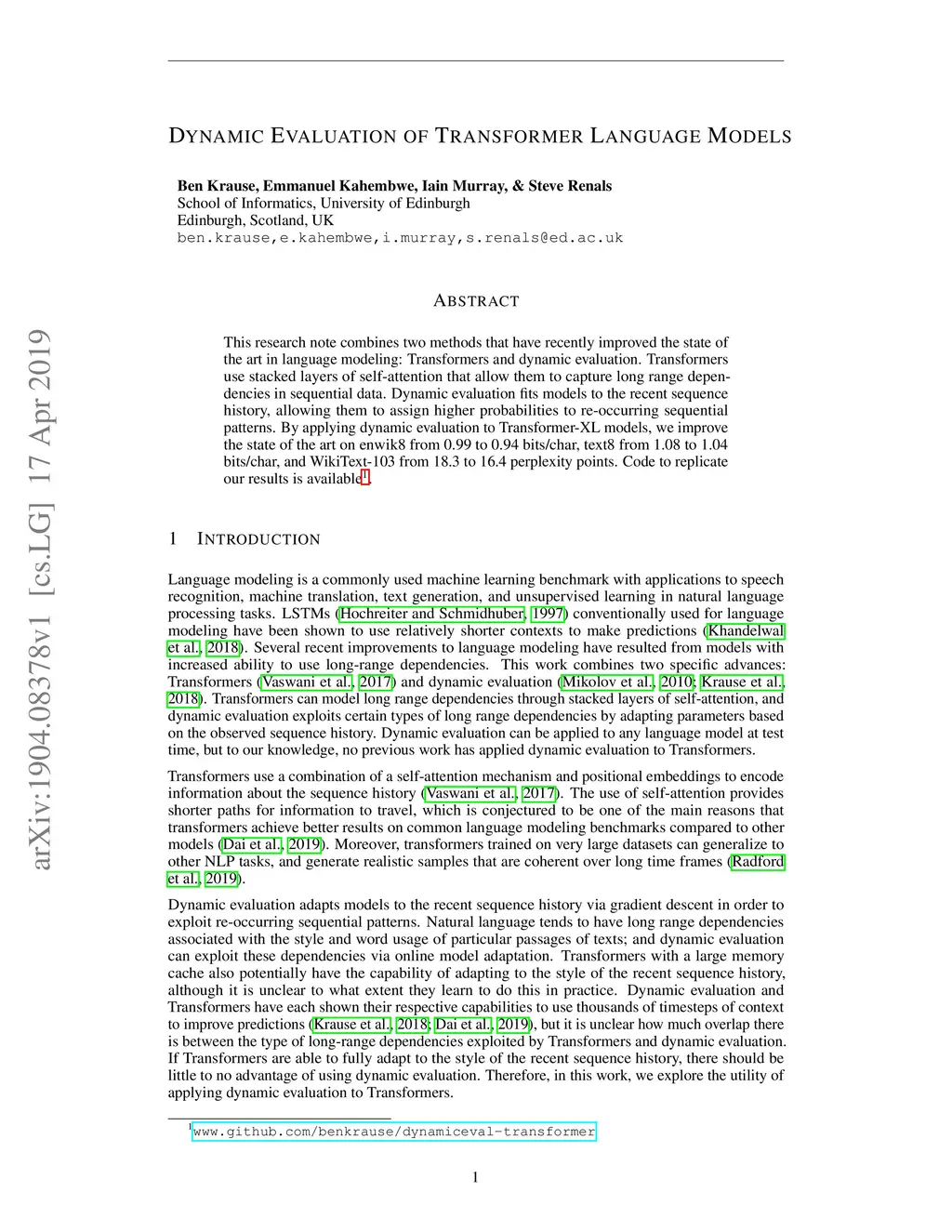 Dynamic Evaluation of Transformer Language Models