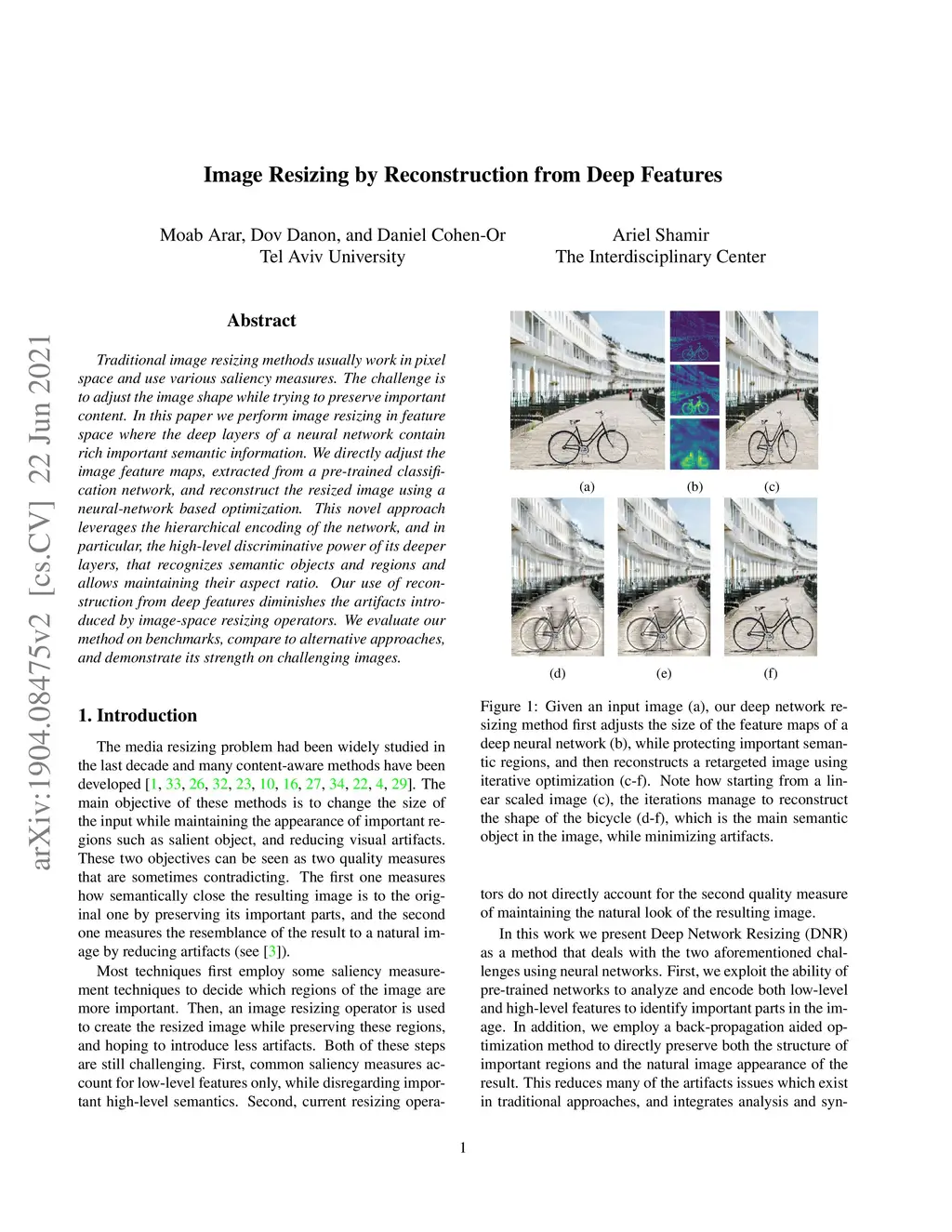 Image Resizing by Reconstruction from Deep Features