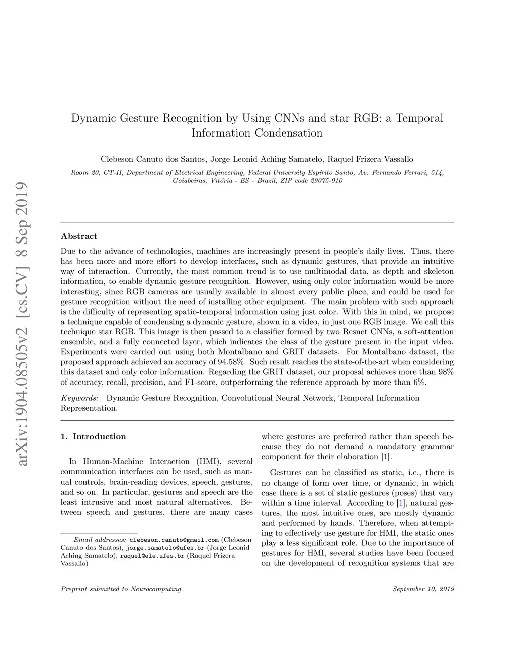 Dynamic Gesture Recognition by Using CNNs and Star RGB: a Temporal