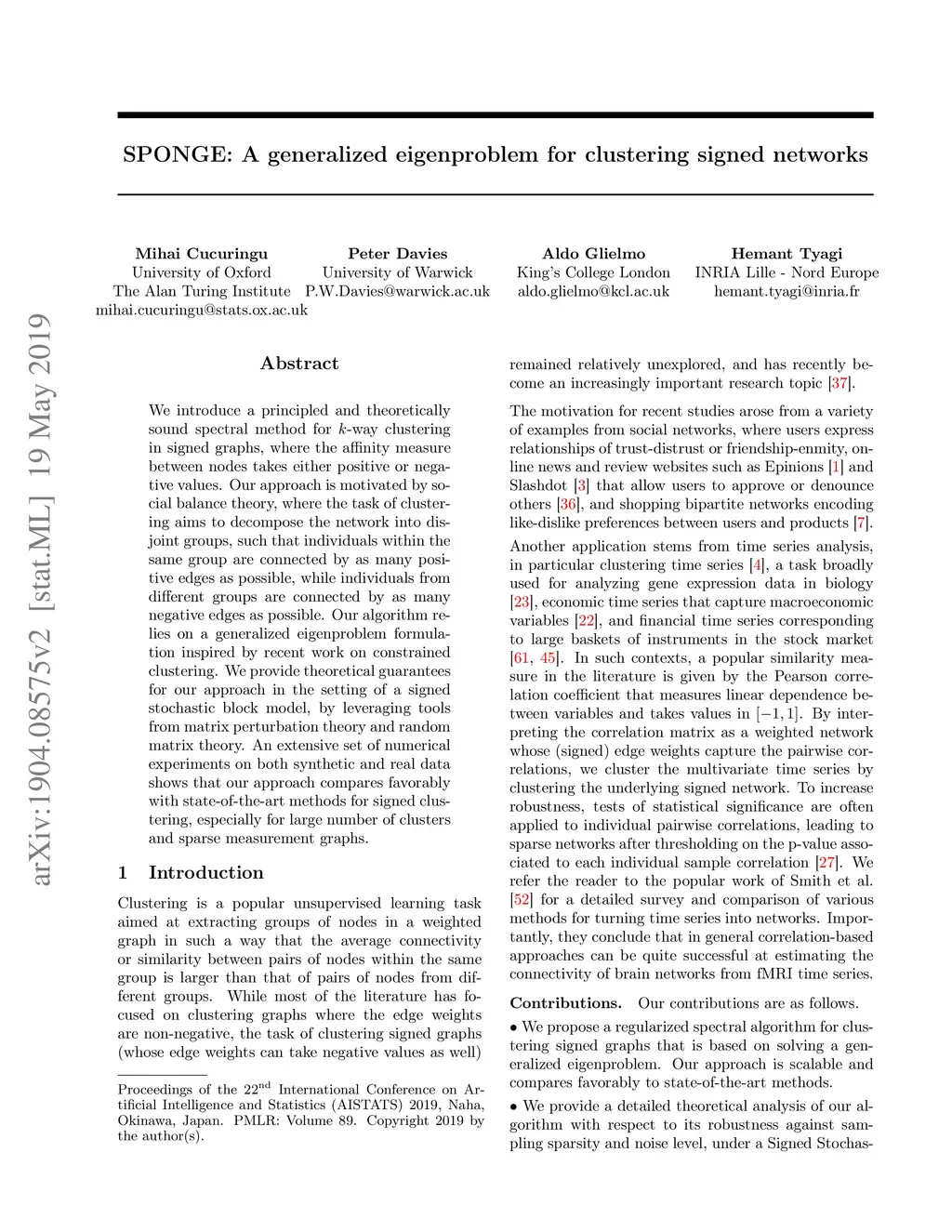 SPONGE: A generalized eigenproblem for clustering signed networks