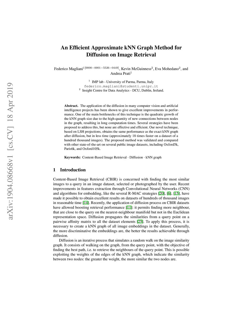 An Efficient Approximate kNN Graph Method for Diffusion on Image