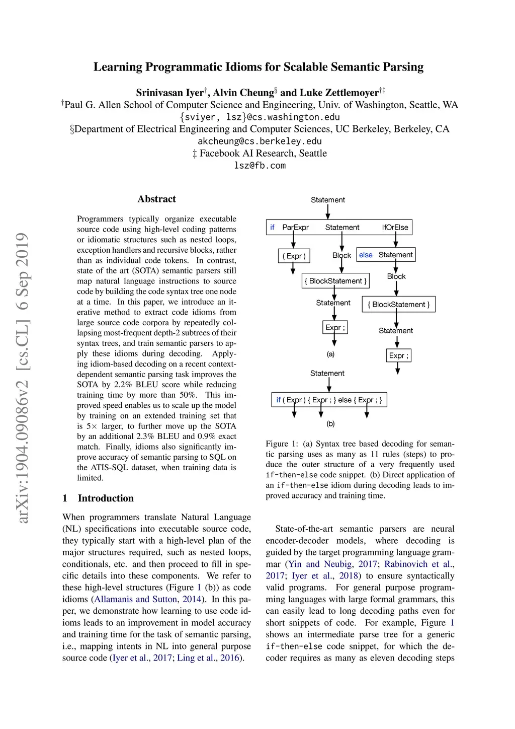 Learning Programmatic Idioms for Scalable Semantic Parsing