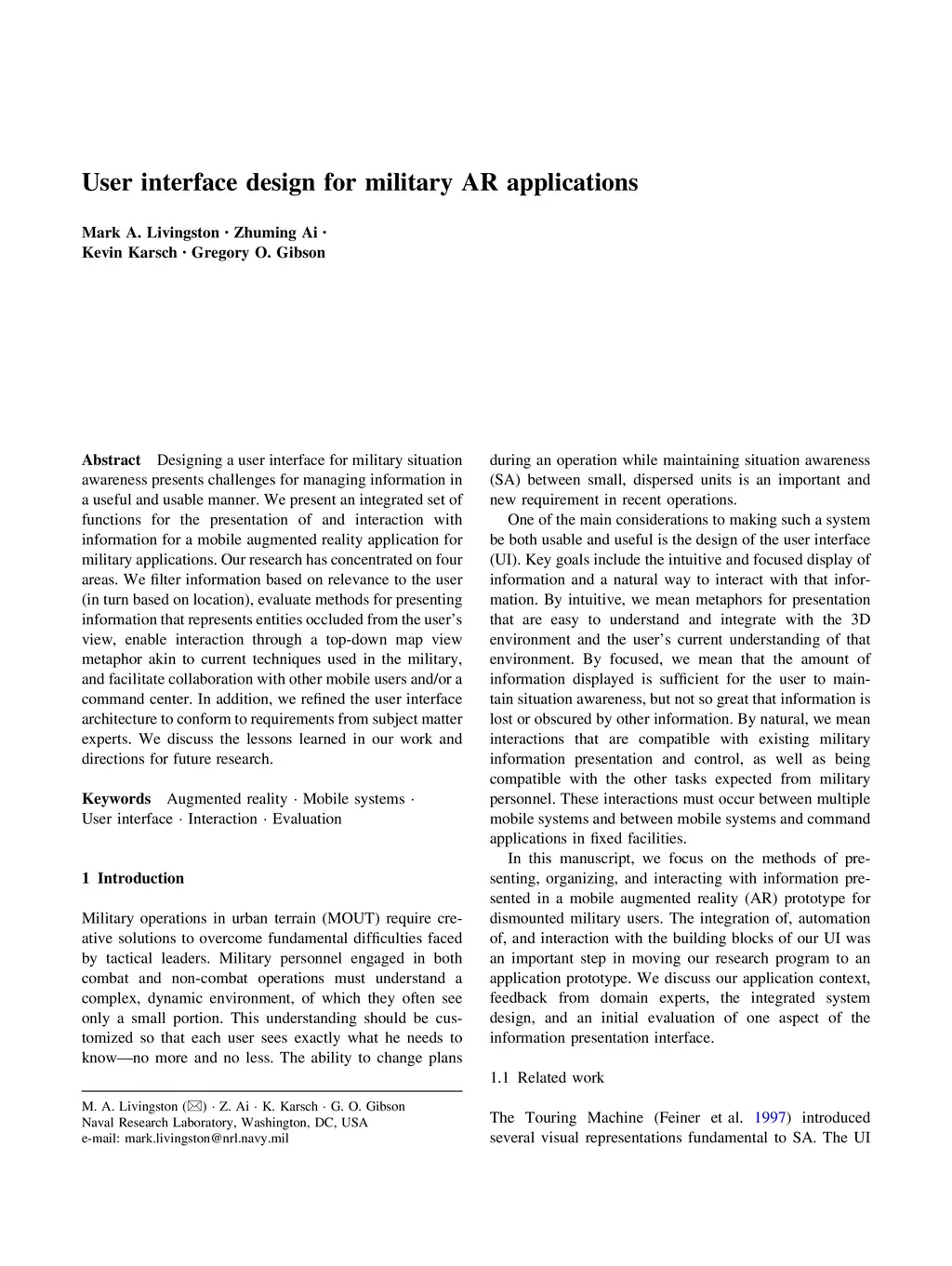 User interface design for military AR applications