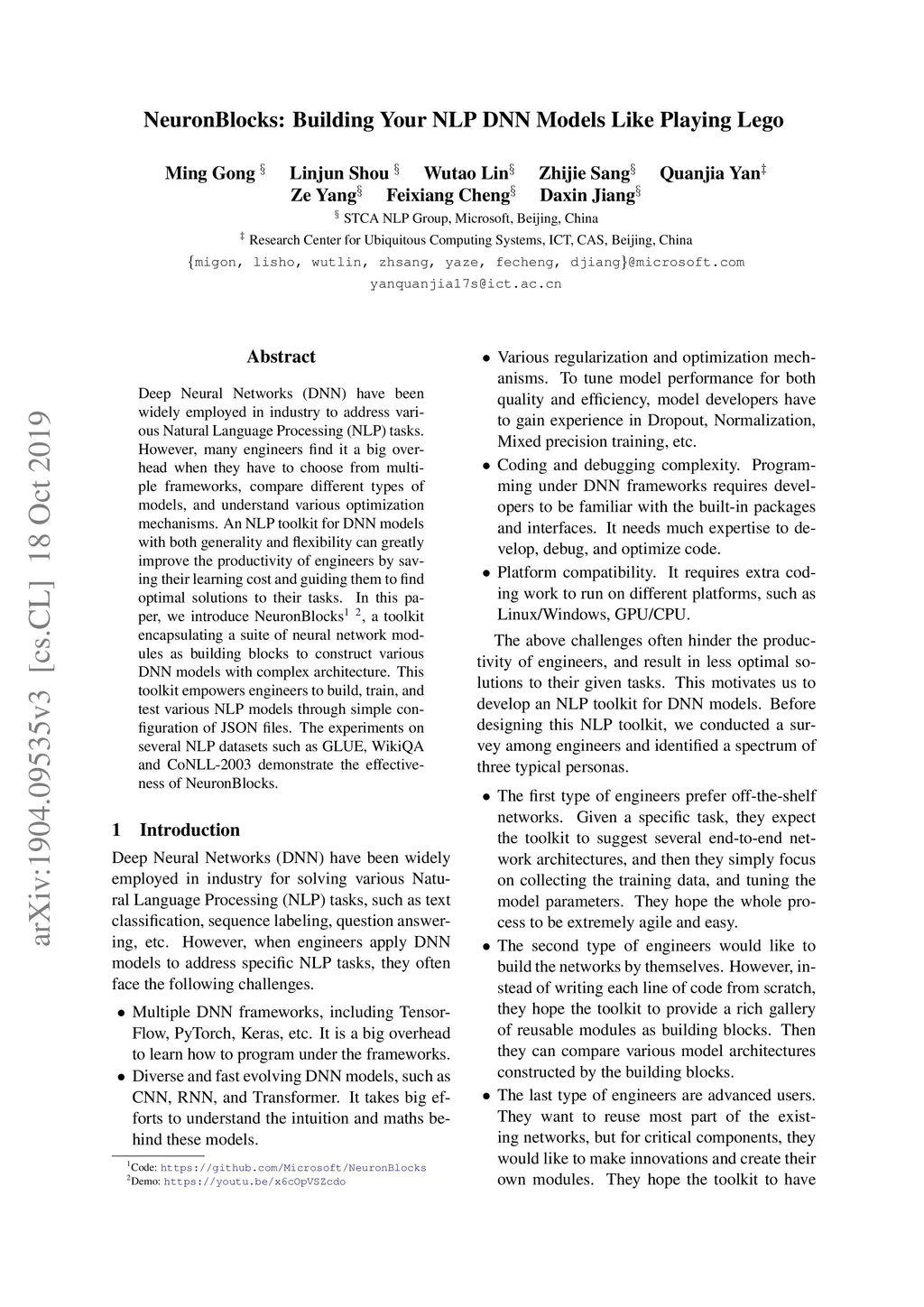 NeuronBlocks: Building Your NLP DNN Models Like Playing Lego