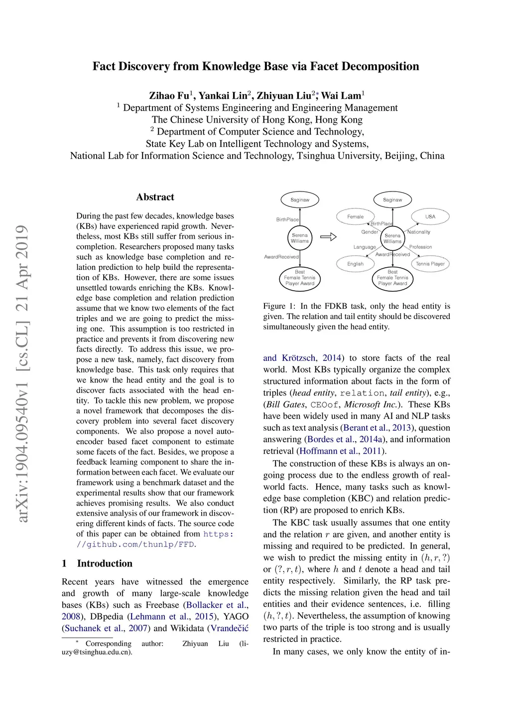 Fact Discovery from Knowledge Base via Facet Decomposition