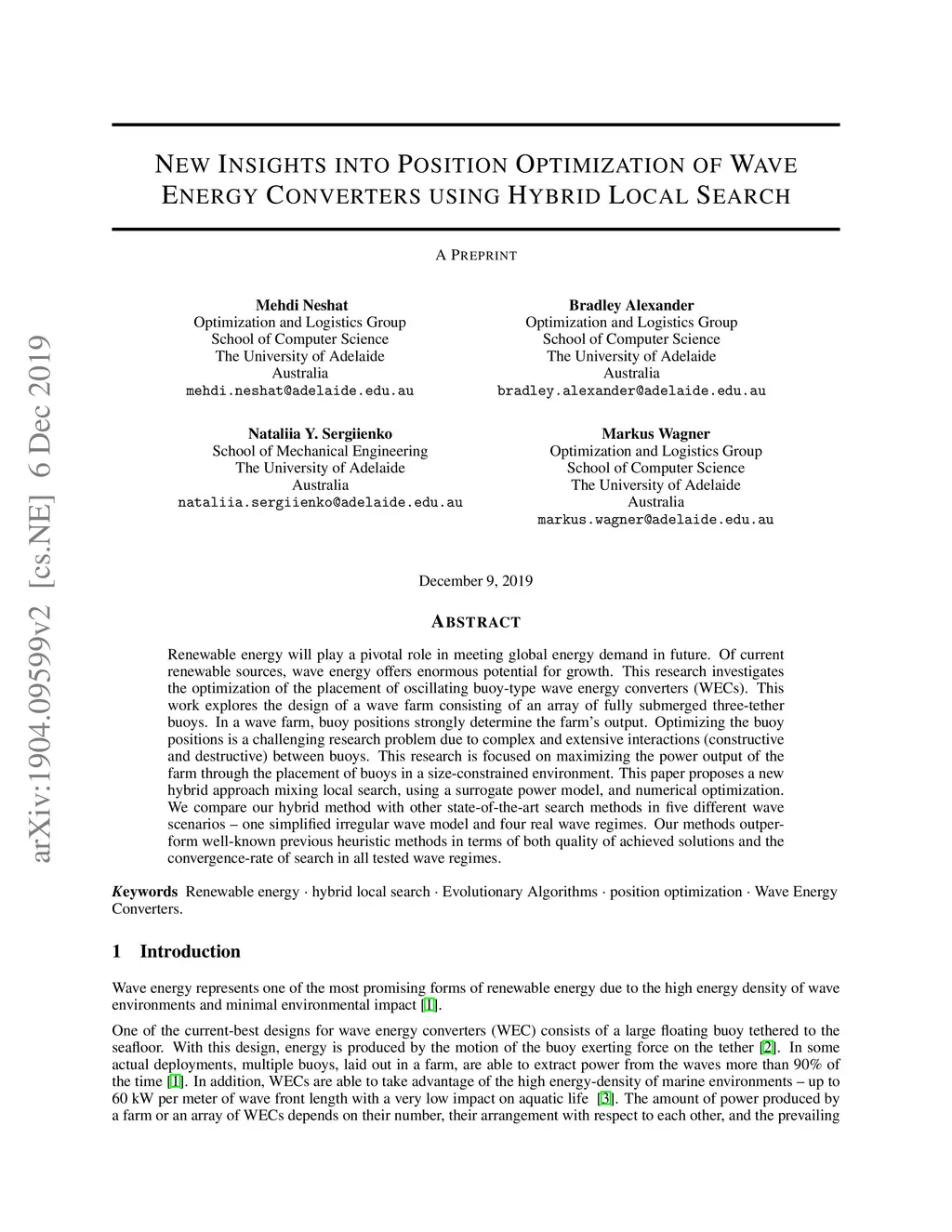 Renewable energy, such as ocean wave energy, plays a pivotal role in addressing the tremendous growth of global energy demand. It is expected that wave energy will be one of the fastest-growing energy resources in the next decade, offering an enormous potential source of sustainable energy. This research investigates the placement optimization of oscillating buoy-type wave energy converters (WEC). The design of a wave farm consisting of an array of fully submerged three-tether buoys is evaluated. In a wave farm, buoy positions have a notable impact on the farm's output. Optimizing the buoy positions is a challenging research problem because of very complex interactions (constructive and destructive) between buoys. The main purpose of this research is maximizing the power output of the farm through the placement of buoys in a size-constrained environment. This paper proposes a new hybrid approach of the heuristic local search combined with a numerical optimization method that utilizes a knowledge-based surrogate power model. We compare the proposed hybrid method with other state-of-the-art search methods in five different wave scenarios -- one simplified irregular wave model and four real wave climates. Our method considerably outperforms all previous heuristic methods in terms of both quality of achieved solutions and the convergence-rate of search in all tested wave regimes.