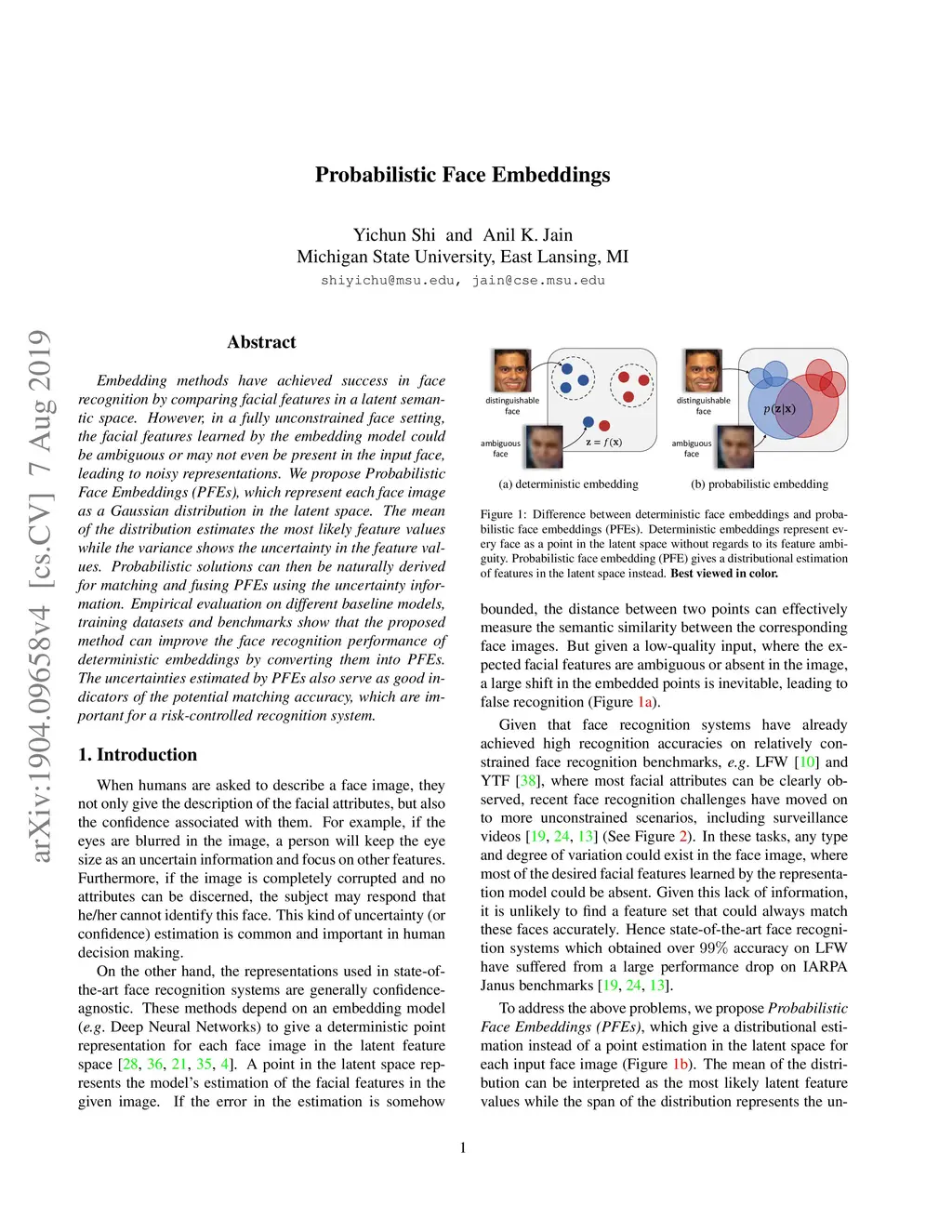Probabilistic Face Embeddings