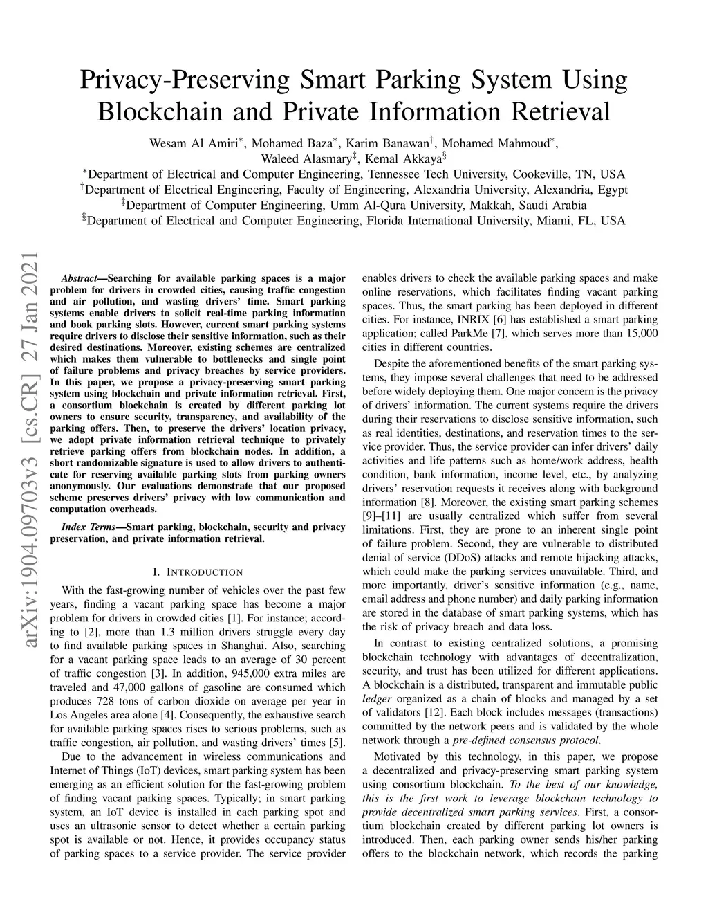 Privacy-Preserving Smart Parking System Using Blockchain and Private