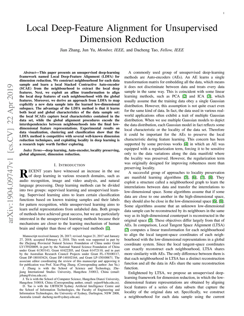 Local Deep-Feature Alignment for Unsupervised Dimension Reduction