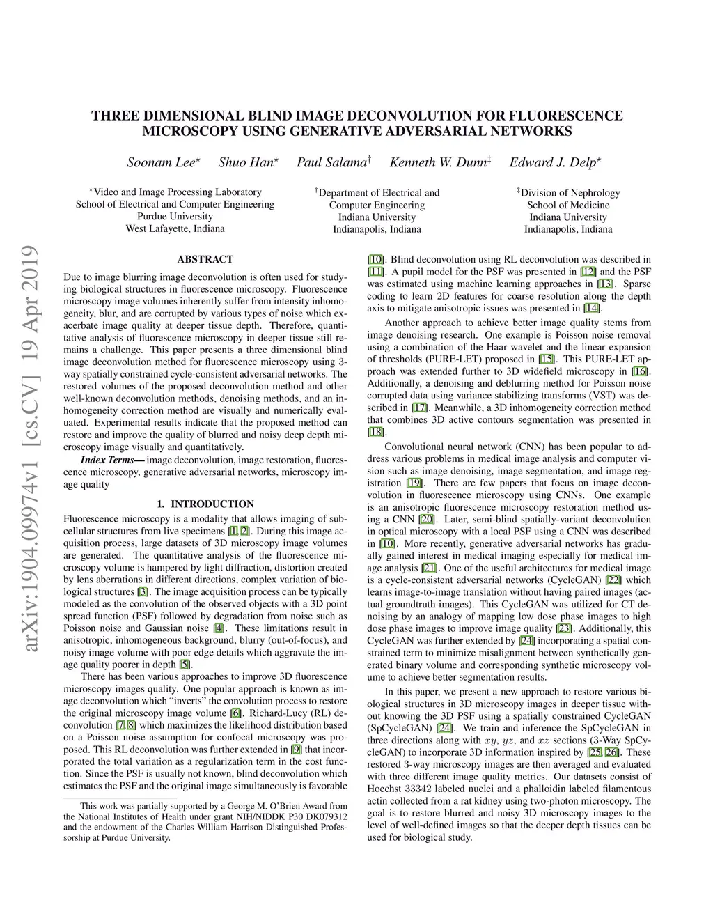 Three dimensional blind image deconvolution for fluorescence microscopy