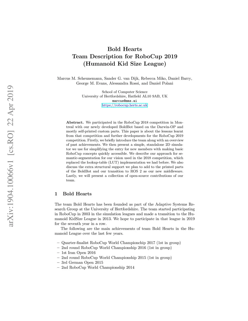 Bold Hearts Team Description for RoboCup 2019 (Humanoid Kid Size League)