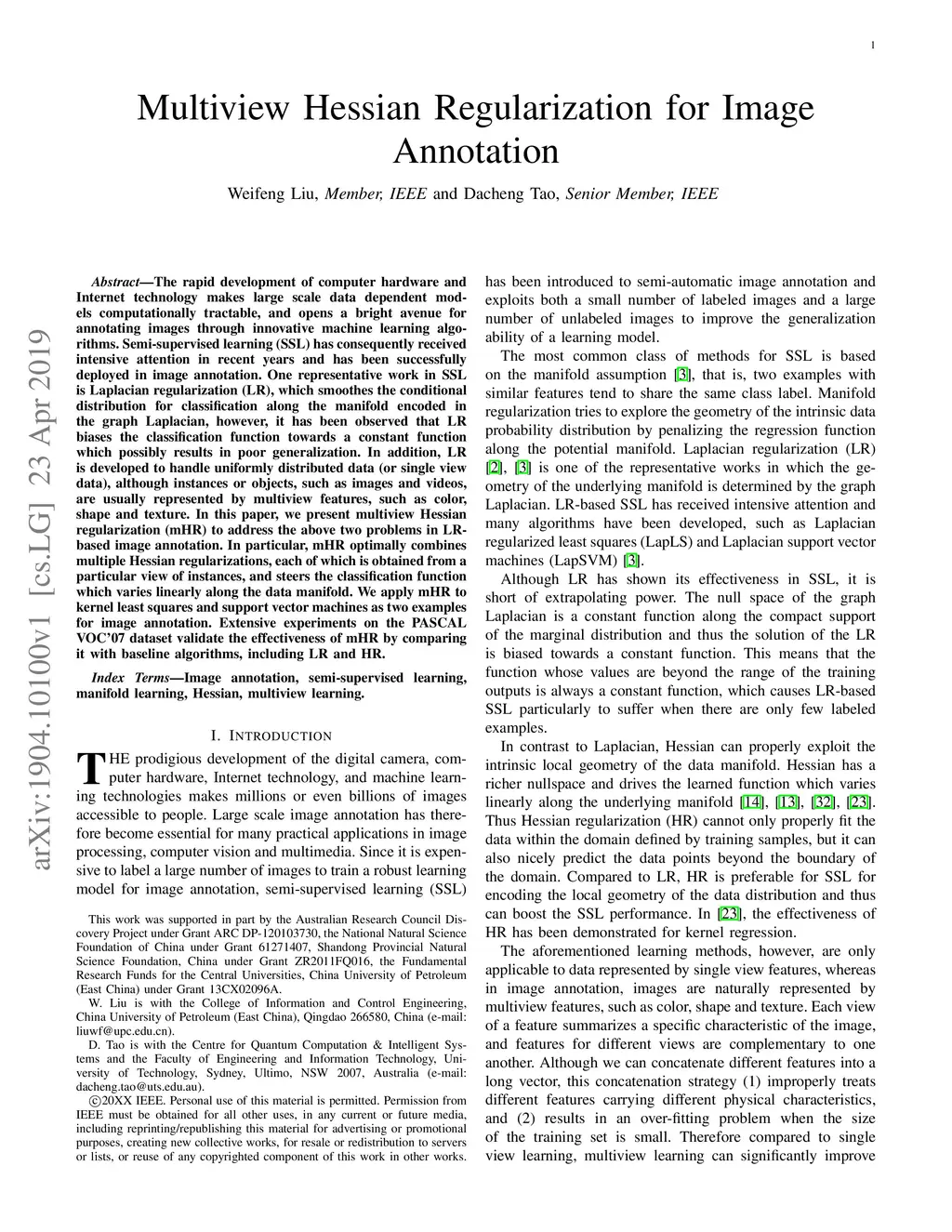 Multiview Hessian Regularization for Image Annotation