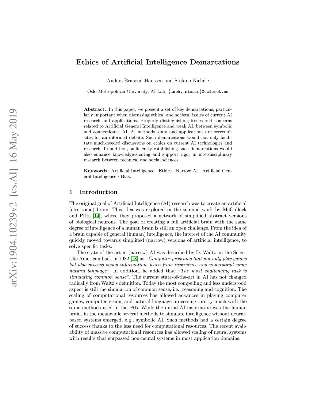 Ethics of Artificial Intelligence Demarcations