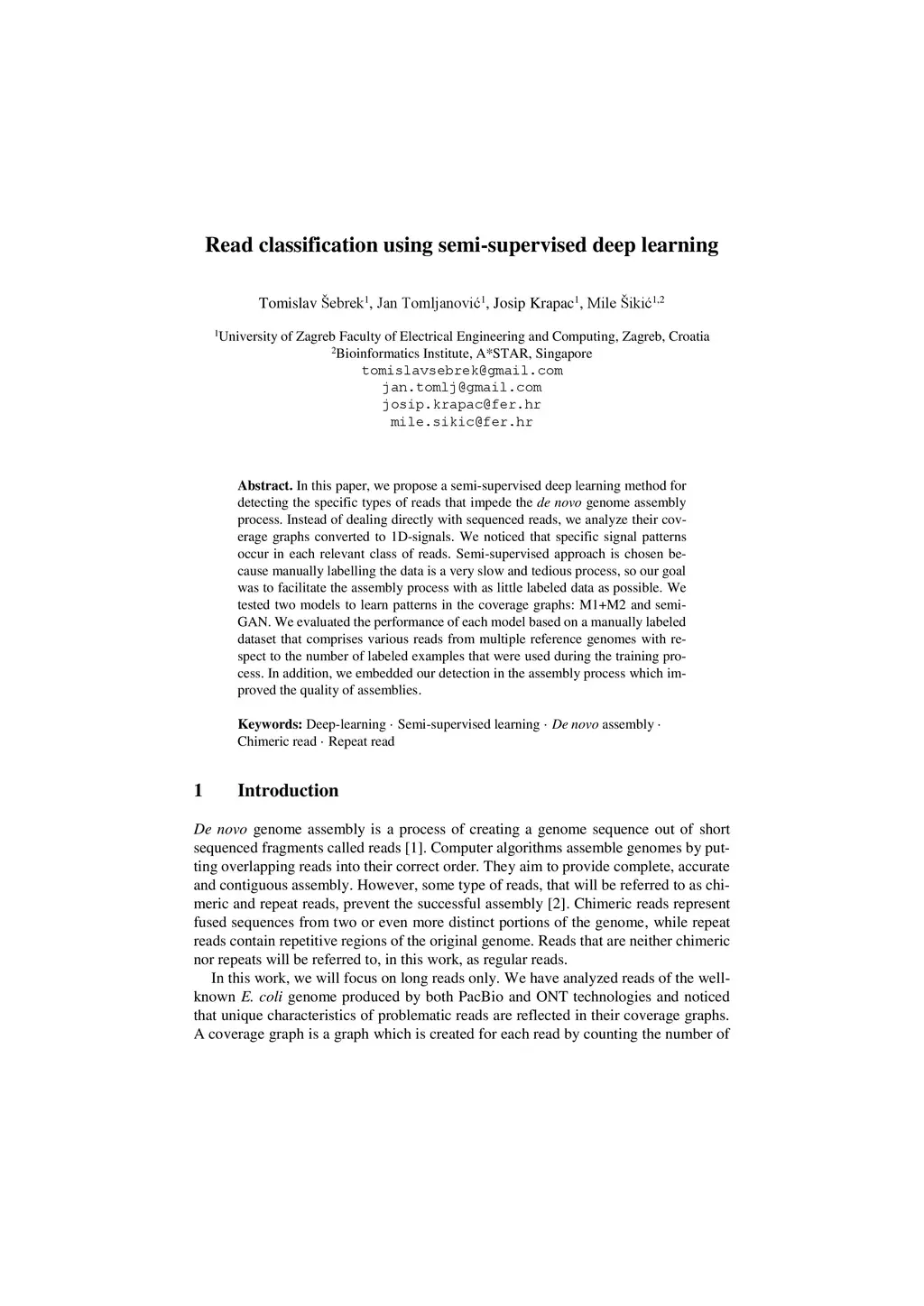 Read classification using semi-supervised deep learning