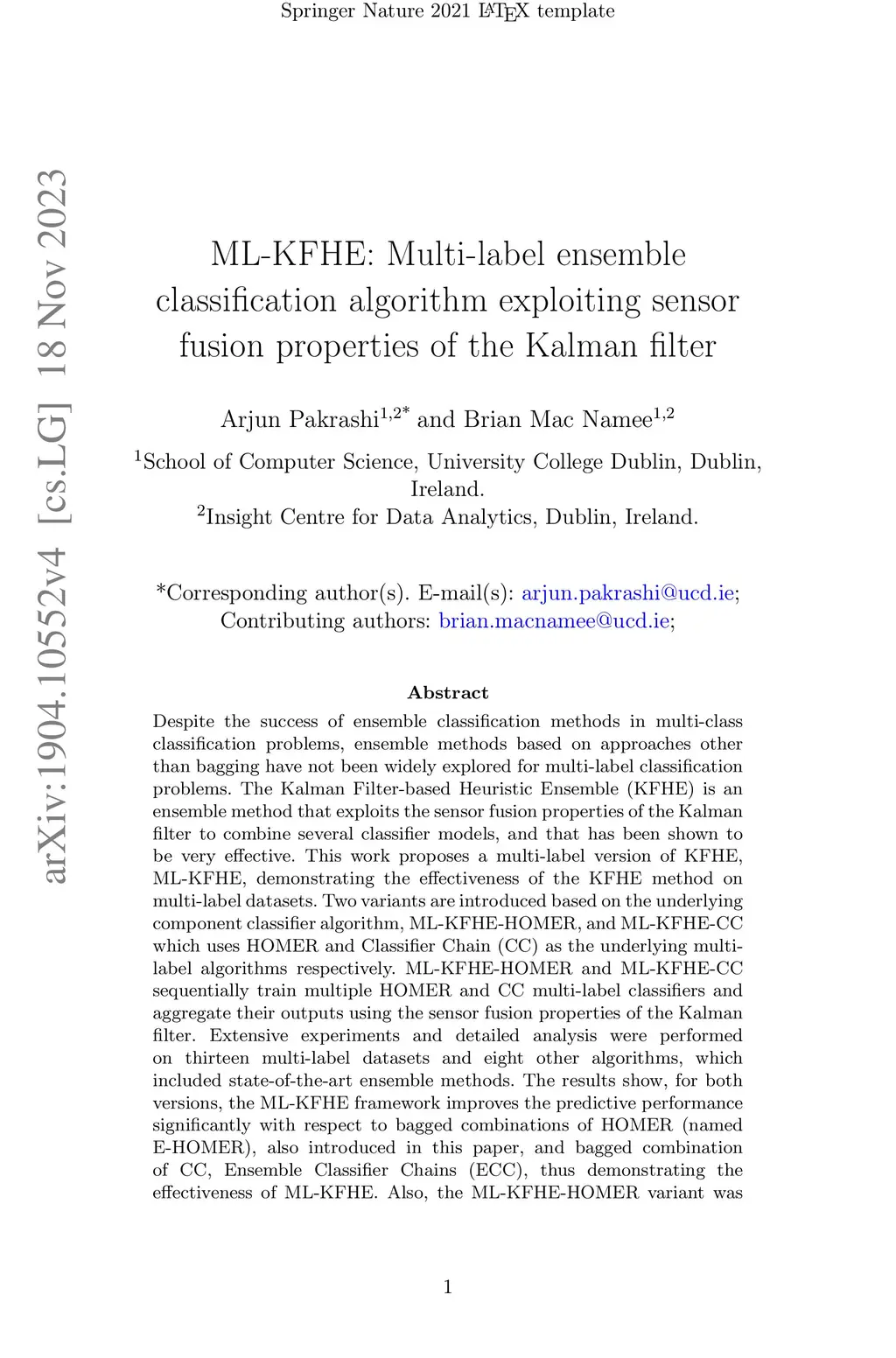 ML-KFHE: Multi-label ensemble classification algorithm exploiting sensor