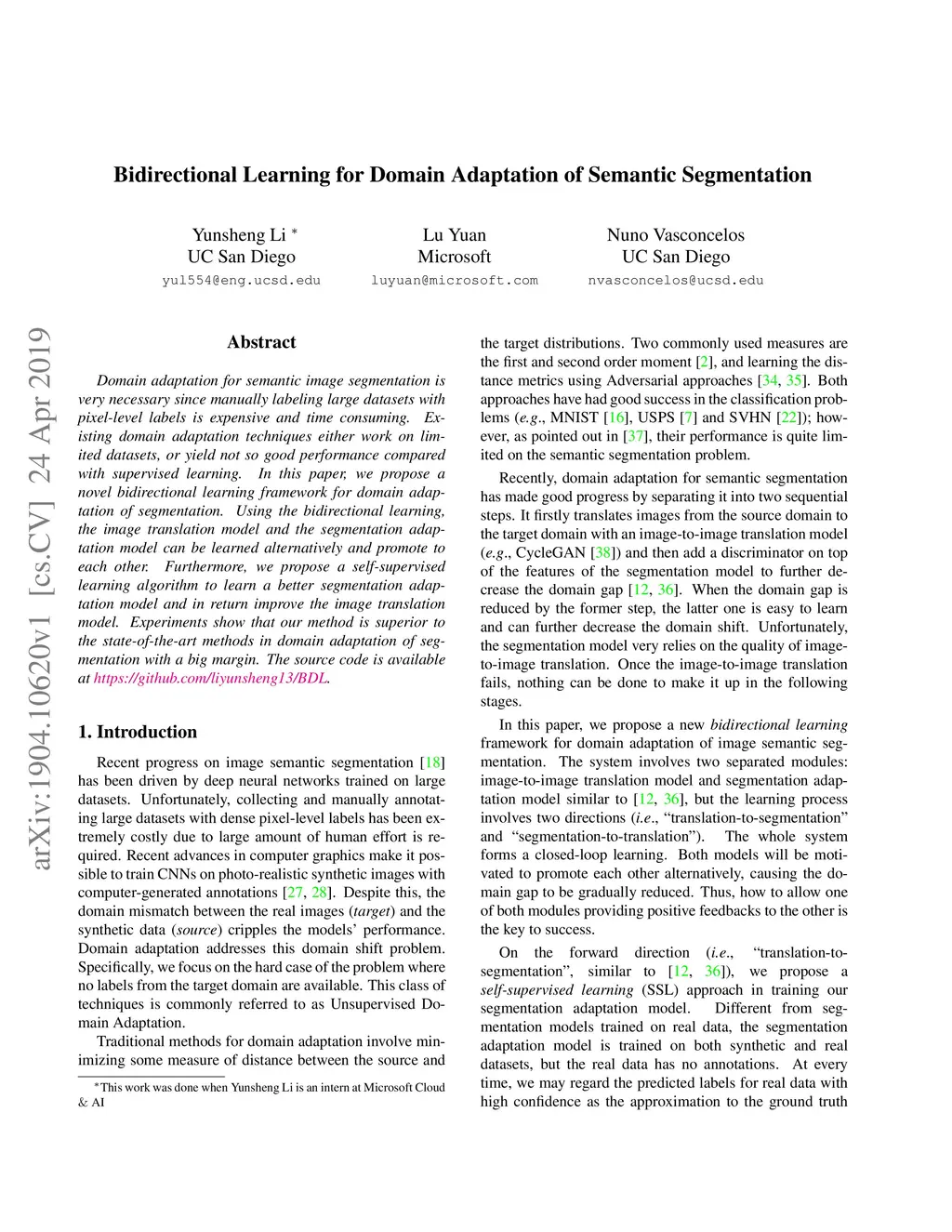 Bidirectional Learning for Domain Adaptation of Semantic Segmentation