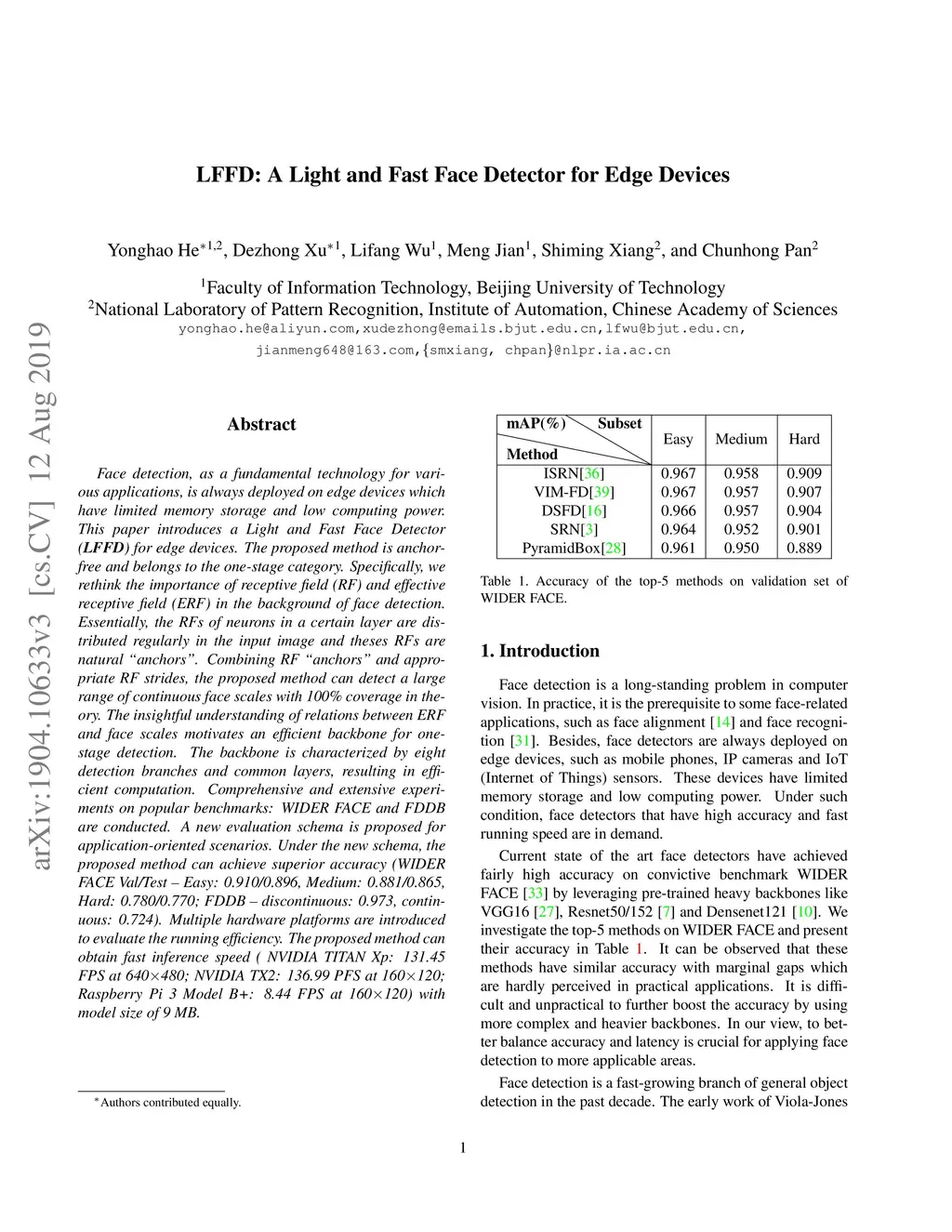 LFFD: A Light and Fast Face Detector for Edge Devices