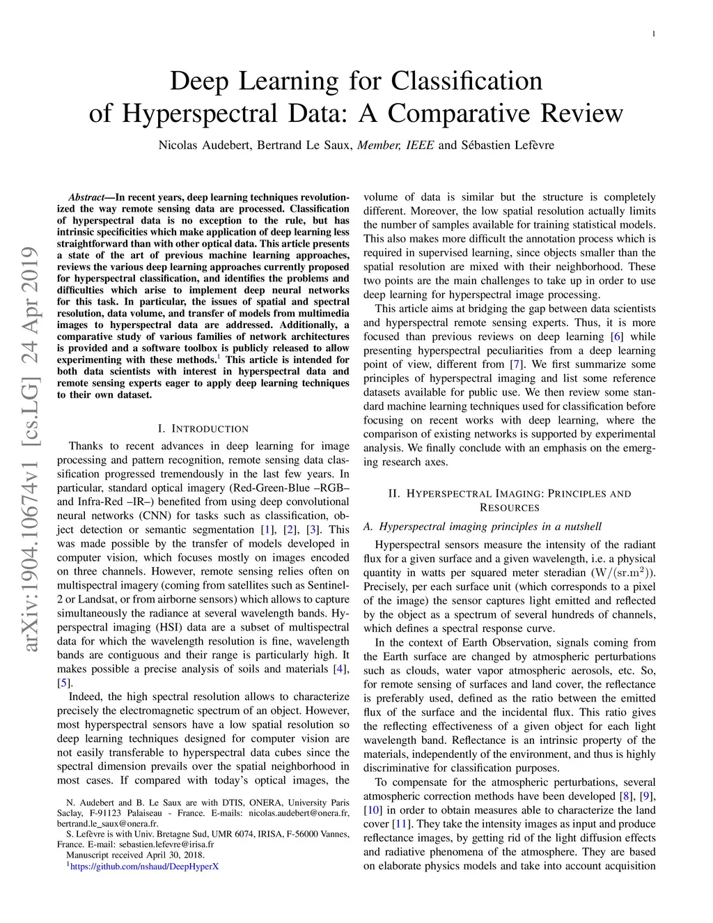In recent years, deep learning techniques revolutionized the way remote sensing data are processed. Classification of hyperspectral data is no exception to the rule, but has intrinsic specificities which make application of deep learning less straightforward than with other optical data. This article presents a state of the art of previous machine learning approaches, reviews the various deep learning approaches currently proposed for hyperspectral classification, and identifies the problems and difficulties which arise to implement deep neural networks for this task. In particular, the issues of spatial and spectral resolution, data volume, and transfer of models from multimedia images to hyperspectral data are addressed. Additionally, a comparative study of various families of network architectures is provided and a software toolbox is publicly released to allow experimenting with these methods. 1 This article is intended for both data scientists with interest in hyperspectral data and remote sensing experts eager to apply deep learning techniques to their own dataset.