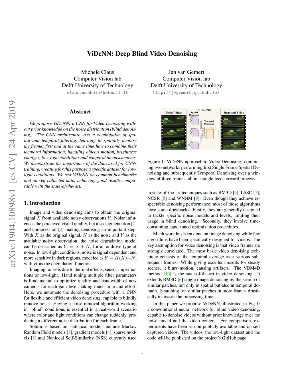 We propose ViDeNN: a CNN for Video Denoising without prior knowledge on the noise distribution (blind denoising). The CNN architecture uses a combination of spatial and temporal filtering, learning to spatially denoise the frames first and at the same time how to combine their temporal information, handling objects motion, brightness changes, low-light conditions and temporal inconsistencies. We demonstrate the importance of the data used for CNNs training, creating for this purpose a specific dataset for low-light conditions. We test ViDeNN on common benchmarks and on self-collected data, achieving good results comparable with the state-of-the-art.