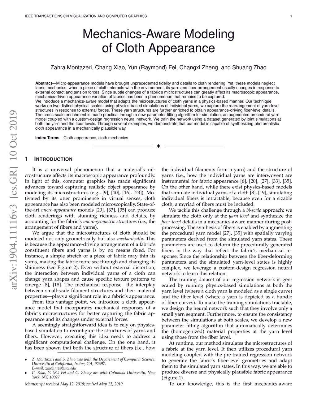 Mechanics-Aware Modeling of Cloth Appearance