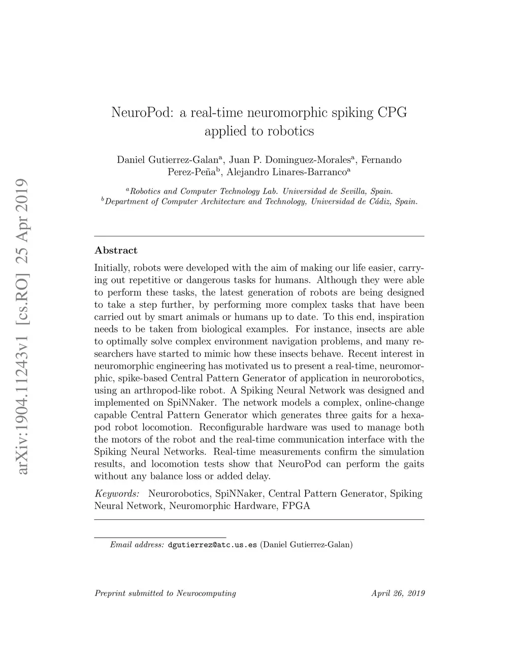 NeuroPod: a real-time neuromorphic spiking CPG applied to robotics