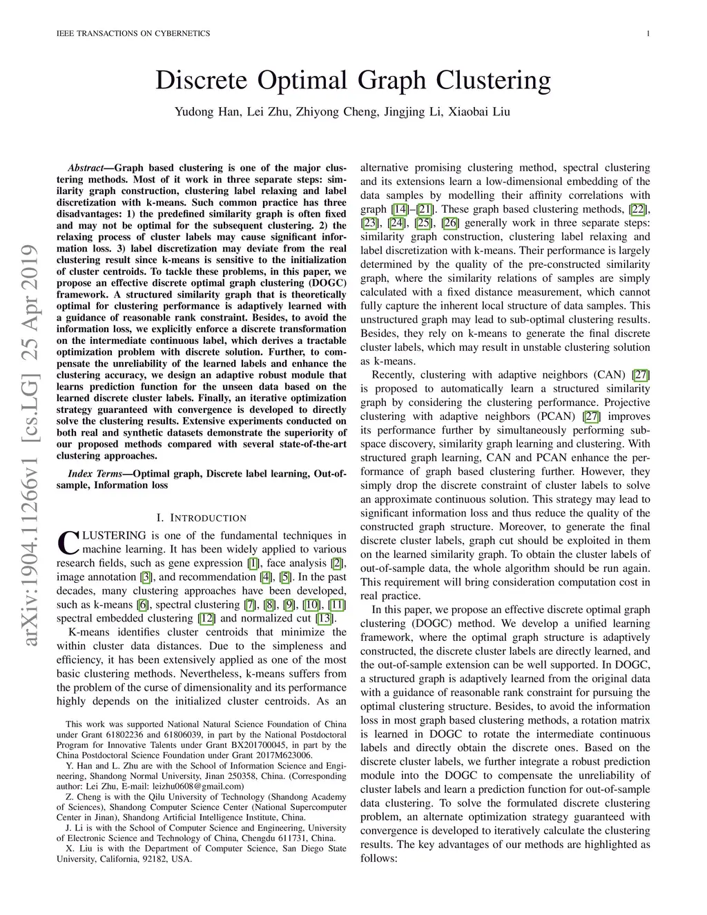 Discrete Optimal Graph Clustering