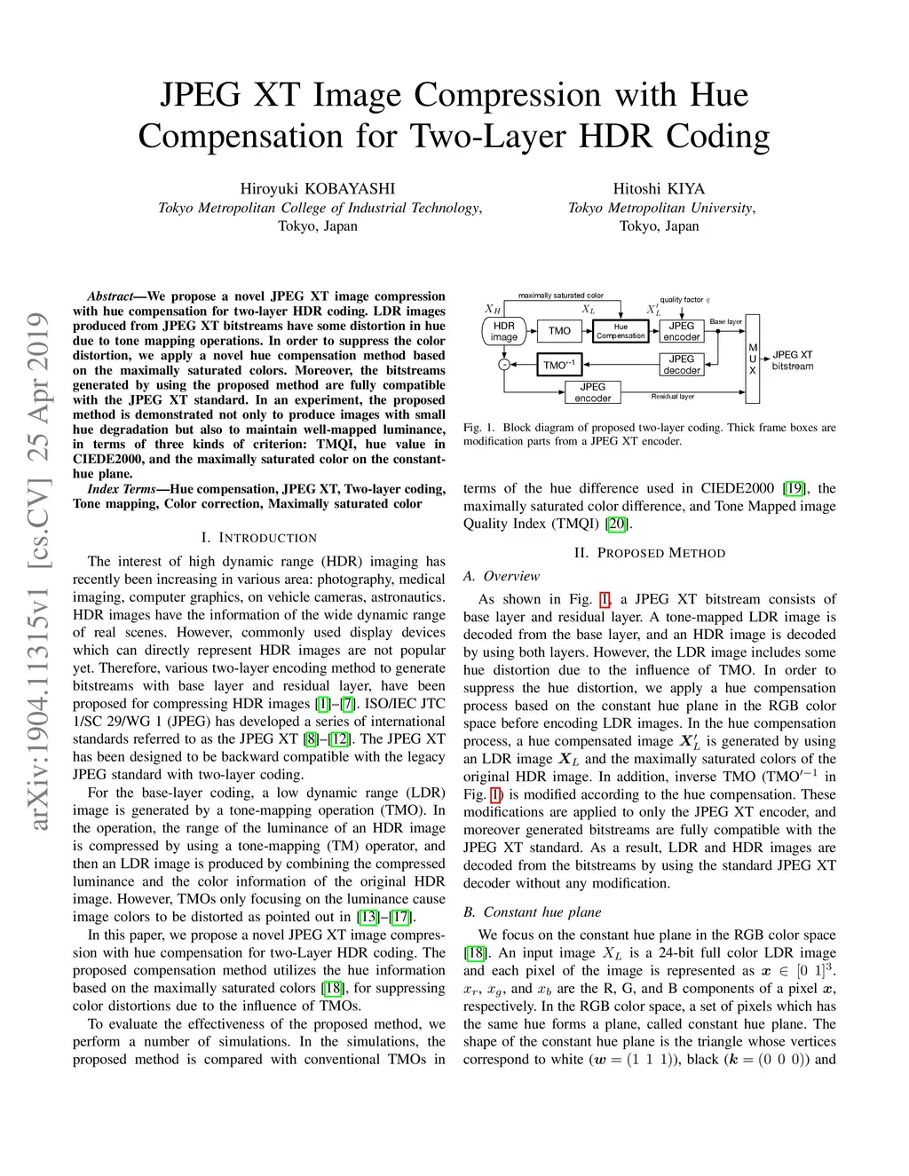 JPEG XT Image Compression with Hue Compensation for Two-Layer HDR Coding