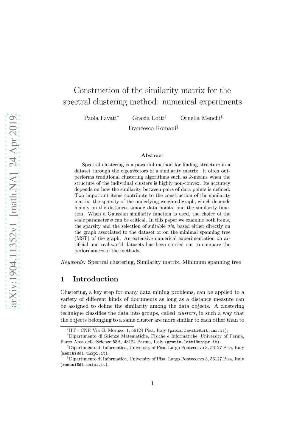 Construction of the similarity matrix for the spectral clustering