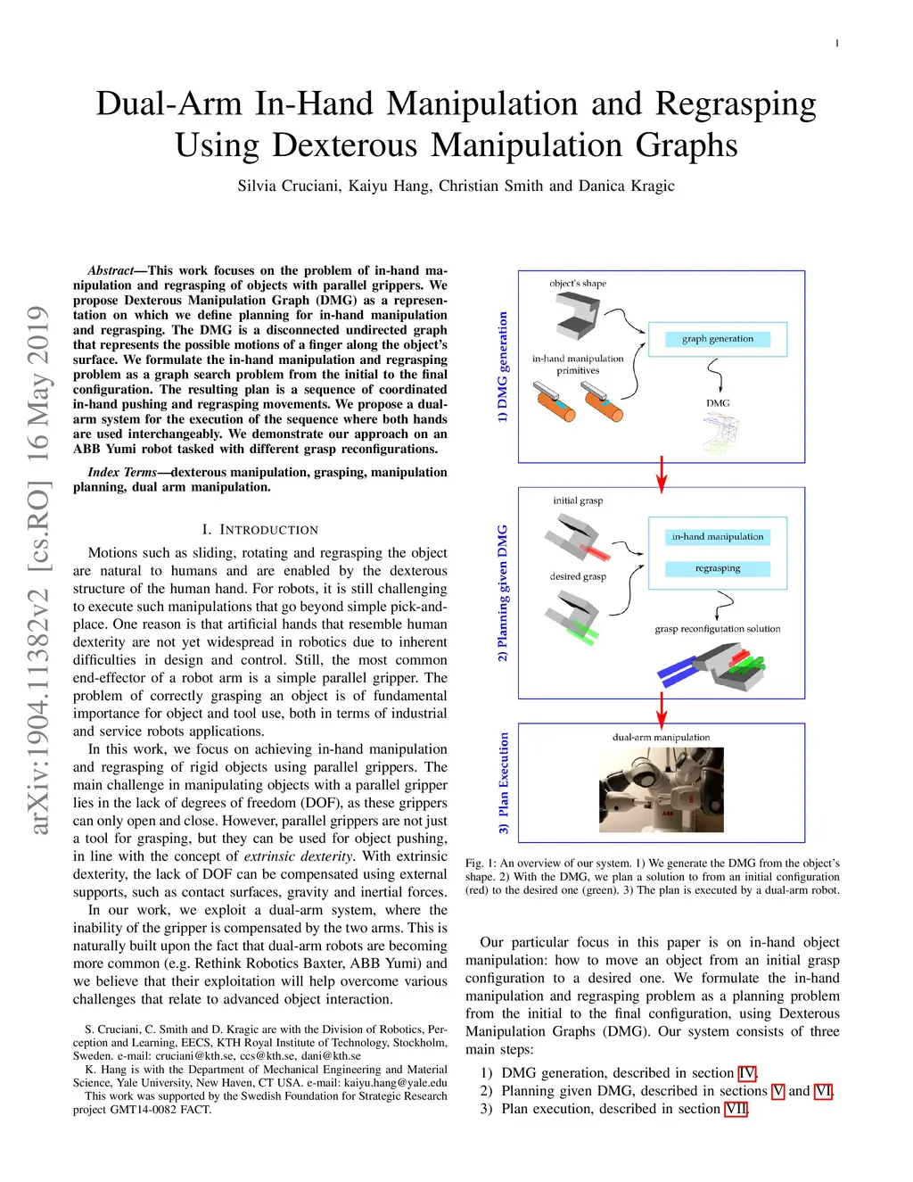 Dual-Arm In-Hand Manipulation and Regrasping Using Dexterous