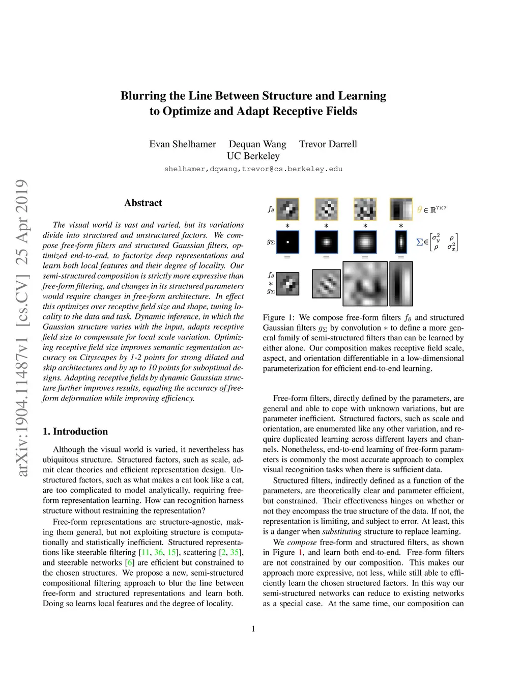 The visual world is vast and varied, but its variations divide into structured and unstructured factors. We compose free-form filters and structured Gaussian filters, optimized end-to-end, to factorize deep representations and learn both local features and their degree of locality. Our semi-structured composition is strictly more expressive than free-form filtering, and changes in its structured parameters would require changes in free-form architecture. In effect this optimizes over receptive field size and shape, tuning locality to the data and task. Dynamic inference, in which the Gaussian structure varies with the input, adapts receptive field size to compensate for local scale variation. Optimizing receptive field size improves semantic segmentation accuracy on Cityscapes by 1-2 points for strong dilated and skip architectures and by up to 10 points for suboptimal designs. Adapting receptive fields by dynamic Gaussian structure further improves results, equaling the accuracy of free-form deformation while improving efficiency.