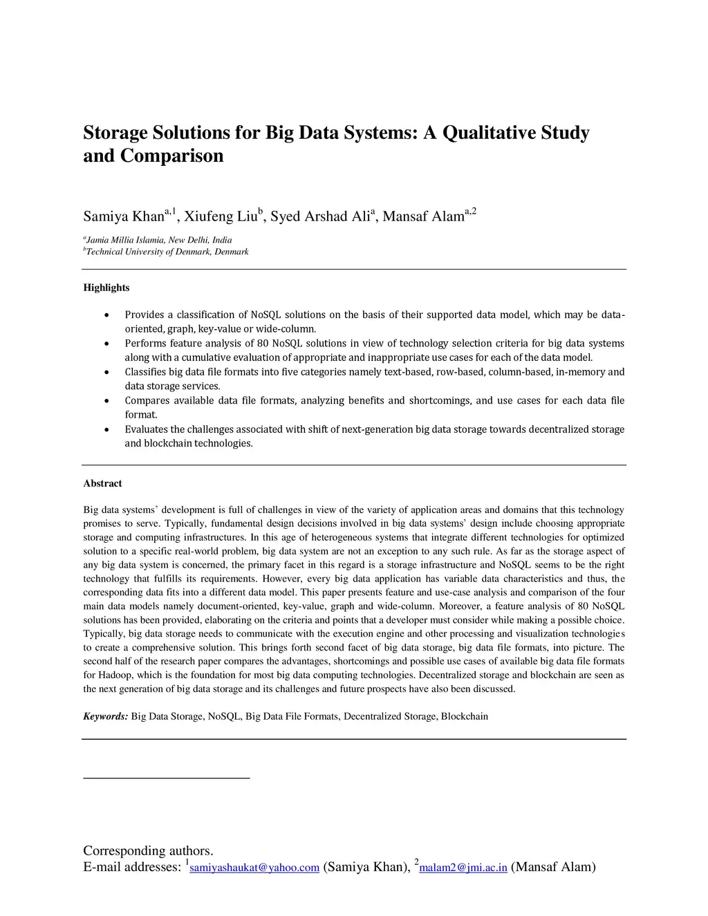 Storage Solutions for Big Data Systems: A Qualitative Study and