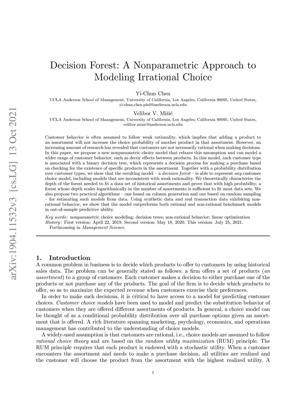 Decision Forest: A Nonparametric Approach to Modeling Irrational Choice