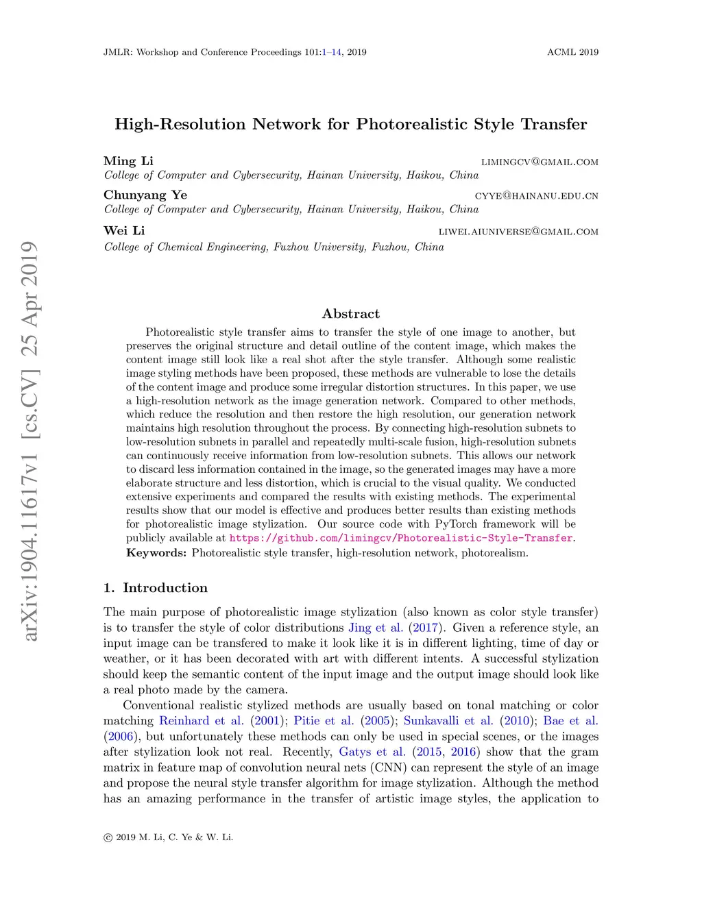High-Resolution Network for Photorealistic Style Transfer