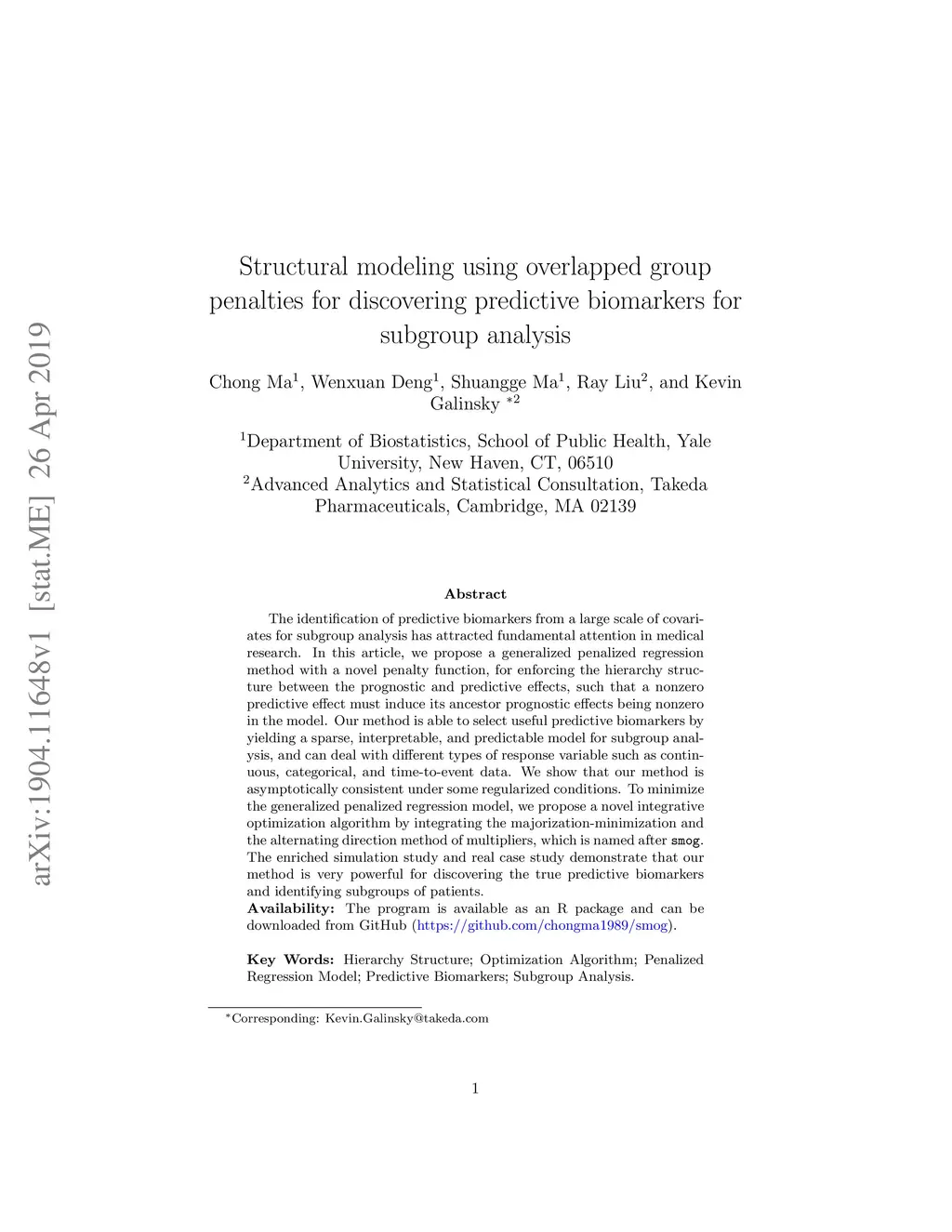 The identification of predictive biomarkers from a large scale of covariates for subgroup analysis has attracted fundamental attention in medical research. In this article, we propose a generalized penalized regression method with a novel penalty function, for enforcing the hierarchy structure between the prognostic and predictive effects, such that a nonzero predictive effect must induce its ancestor prognostic effects being nonzero in the model. Our method is able to select useful predictive biomarkers by yielding a sparse, interpretable, and predictable model for subgroup analysis, and can deal with different types of response variable such as continuous, categorical, and time-to-event data. We show that our method is asymptotically consistent under some regularized conditions. To minimize the generalized penalized regression model, we propose a novel integrative optimization algorithm by integrating the majorization-minimization and the alternating direction method of multipliers, which is named after \texttt{smog}. The enriched simulation study and real case study demonstrate that our method is very powerful for discovering the true predictive biomarkers and identifying subgroups of patients.