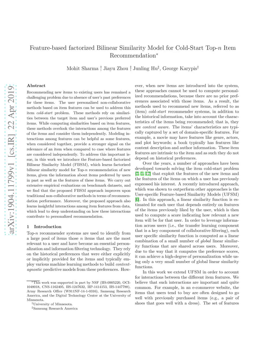 Feature-based factorized Bilinear Similarity Model for Cold-Start Top-n