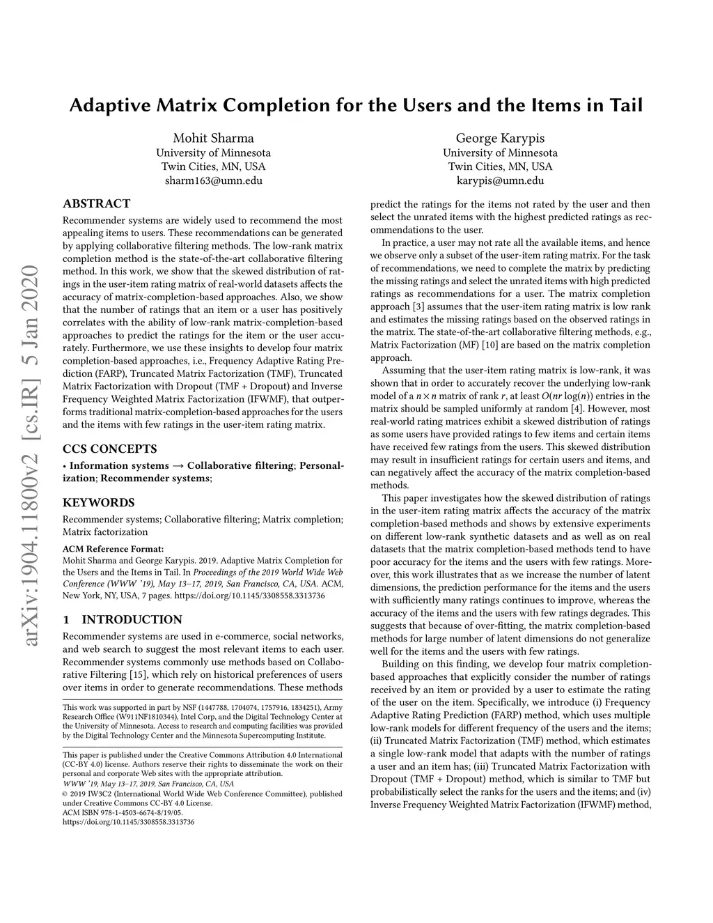 Adaptive Matrix Completion for the Users and the Items in Tail