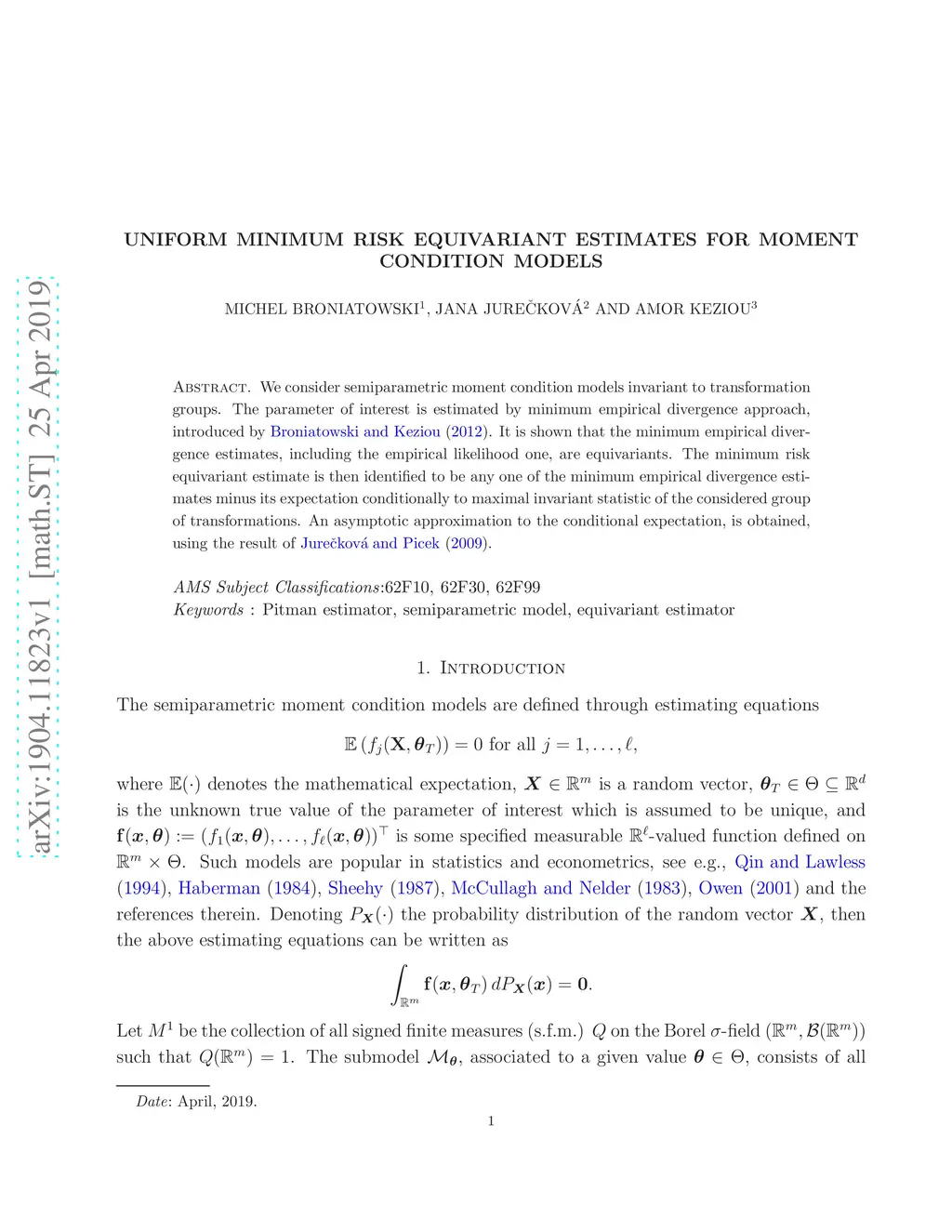Uniform minimum risk equivariant estimates for moment condition models