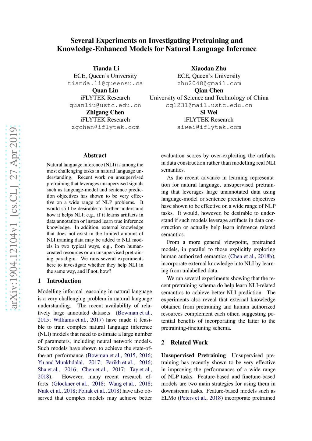 Several Experiments on Investigating Pretraining and Knowledge-Enhanced