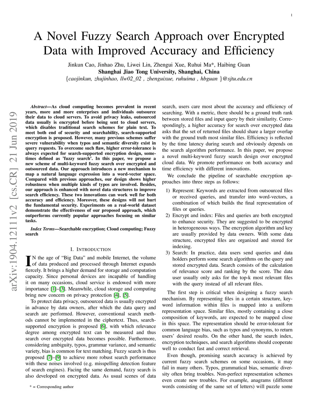 A Novel Fuzzy Search Approach over Encrypted Data with Improved Accuracy