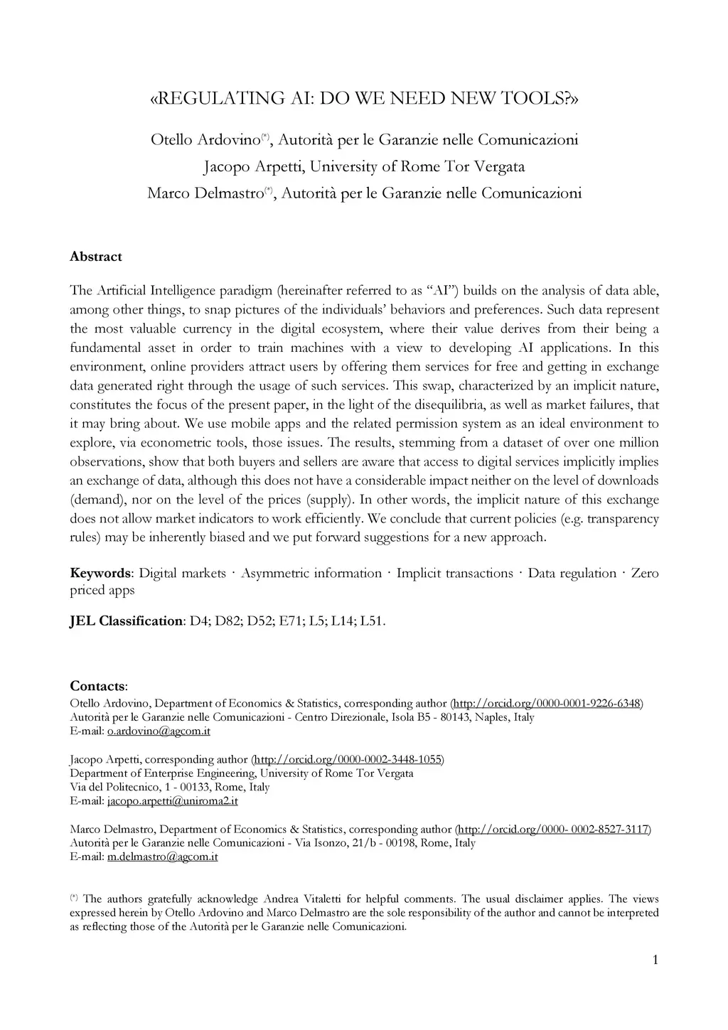 The Artificial Intelligence paradigm (hereinafter referred to as "AI") builds on the analysis of data able, among other things, to snap pictures of the individuals' behaviors and preferences. Such data represent the most valuable currency in the digital ecosystem, where their value derives from their being a fundamental asset in order to train machines with a view to developing AI applications. In this environment, online providers attract users by offering them services for free and getting in exchange data generated right through the usage of such services. This swap, characterized by an implicit nature, constitutes the focus of the present paper, in the light of the disequilibria, as well as market failures, that it may bring about. We use mobile apps and the related permission system as an ideal environment to explore, via econometric tools, those issues. The results, stemming from a dataset of over one million observations, show that both buyers and sellers are aware that access to digital services implicitly implies an exchange of data, although this does not have a considerable impact neither on the level of downloads (demand), nor on the level of the prices (supply). In other words, the implicit nature of this exchange does not allow market indicators to work efficiently. We conclude that current policies (e.g. transparency rules) may be inherently biased and we put forward suggestions for a new approach.