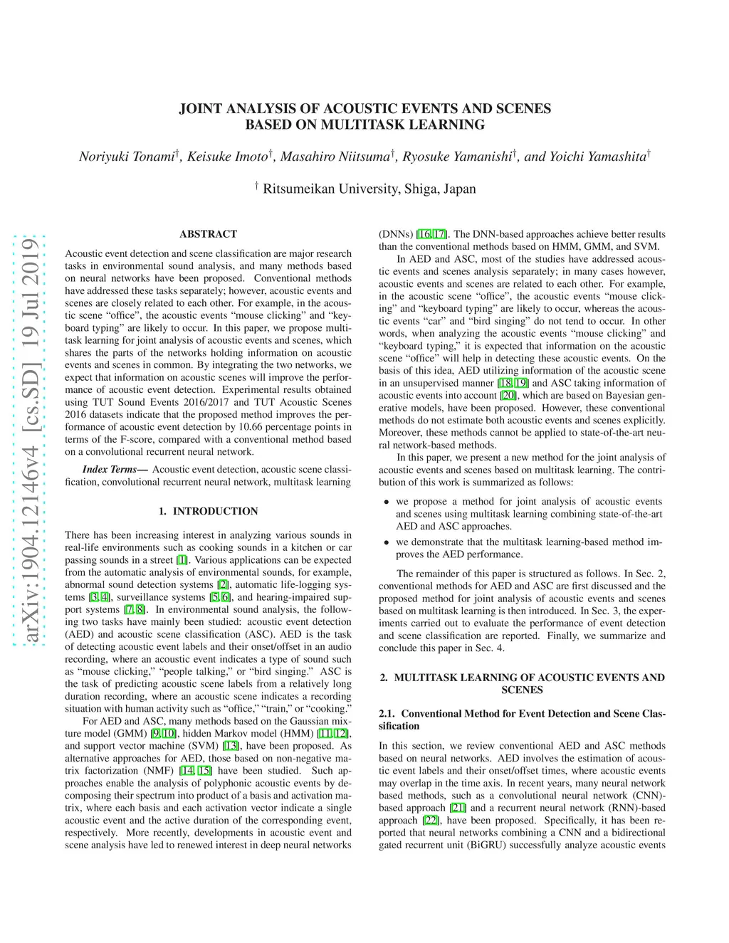 Joint Analysis of Acoustic Events and Scenes Based on Multitask Learning