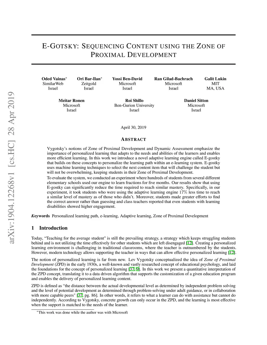 E-Gotsky: Sequencing Content using the Zone of Proximal Development