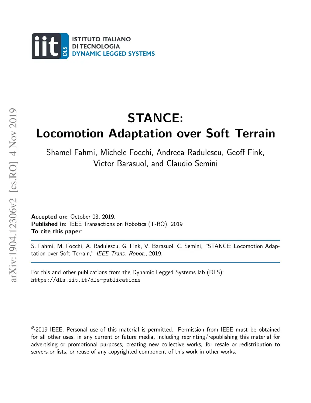 STANCE: Locomotion Adaptation over Soft Terrain