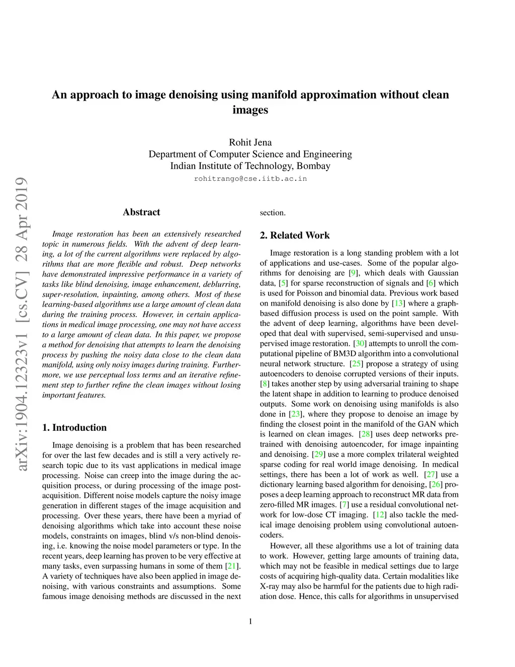 Image restoration has been an extensively researched topic in numerous fields. With the advent of deep learning, a lot of the current algorithms were replaced by algorithms that are more flexible and robust. Deep networks have demonstrated impressive performance in a variety of tasks like blind denoising, image enhancement, deblurring, super-resolution, inpainting, among others. Most of these learning-based algorithms use a large amount of clean data during the training process. However, in certain applications in medical image processing, one may not have access to a large amount of clean data. In this paper, we propose a method for denoising that attempts to learn the denoising process by pushing the noisy data close to the clean data manifold, using only noisy images during training. Furthermore, we use perceptual loss terms and an iterative refinement step to further refine the clean images without losing important features.