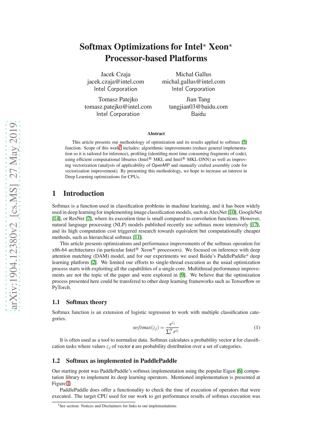 Softmax Optimizations for Intel Xeon Processor-based Platforms